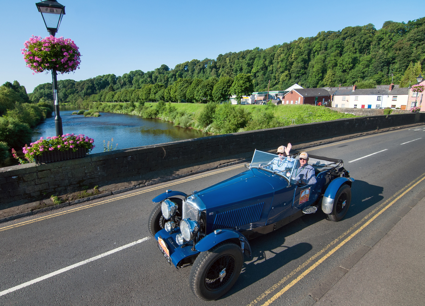 At 16:00 exactly, Patrick Burke and Maxime Mezger rolled over the line, the Arrive and Drive Riley Brooklands 9HP leading the crews away from the Celtic Manor start, but not going too far for the first action. A tight and loose test was the first competitive action of the event, the loose surface keeping crews on their toes as they got used to driving in the blazing Welsh sunshine. The cones on this test were placed close, forcing even some of the more seasoned competitors into reversing at times. Test one caught a few out, including Seren Whyte and Sean Toohey, the Austin Seven they were using having problems with steering on the loose and damaging the car’s front mudguard, we are happy to report that the vehicle is repaired and will be back out tomorrow though. A gentle regularity followed and took the crews round the steelworks near Magor, this was called Llanwern and took in just under ten miles of fairly open lanes with not many slots to fool the crews. From the start, business partners Chas Colton and Howard Warren were embroiled in battle, Colton had brought out a new navigator to the event, Chester’s Niall Carroll, it looks like Niall has been taking some excellent advice has he guided Chas to the lowest regularity score over the day, a superb showing in his first ever event. Amongst the novices, Matt Johnson and Paul Philmore were starting to get to grips with things, they were out in an Alfa Romeo 1750 GTV supplied by HERO Arrive and Drive, it was plain to see that they were enjoying things with the smiles on their faces. The second regularity was a much longer affair at just over 20 miles, named Magor, this was something for the more experienced crews to assert their authority. Peter and Rayna Jackson were in fine form, and although they couldn’t match the skill of Colton/Carroll and Warren/Tullie, they had a superb start to see them lie in third overnight. Another new pairing doing well were Father and Daughter pair Guy and Claire Woodcock, using Matt Warren’s beautiful mark 1 Escort, the flamboyant style of Woodcock was exciting to watch on the tests whilst Claire had a great run on the regularities and despite being baulked by local traffic, ended the day in fourth. The success was attributed to Guy writing L& R on his driving gloves to remind him which way was what! The route of this regularity started to show crews just what to expect on the lanes, after leaving Magor, the regularity snaked around Wentwood and took in some tricky loops to catch the unwary out. Many crews fell foul to local traffic and farm machinery, costing them dearly in their pursuit of a clean run.