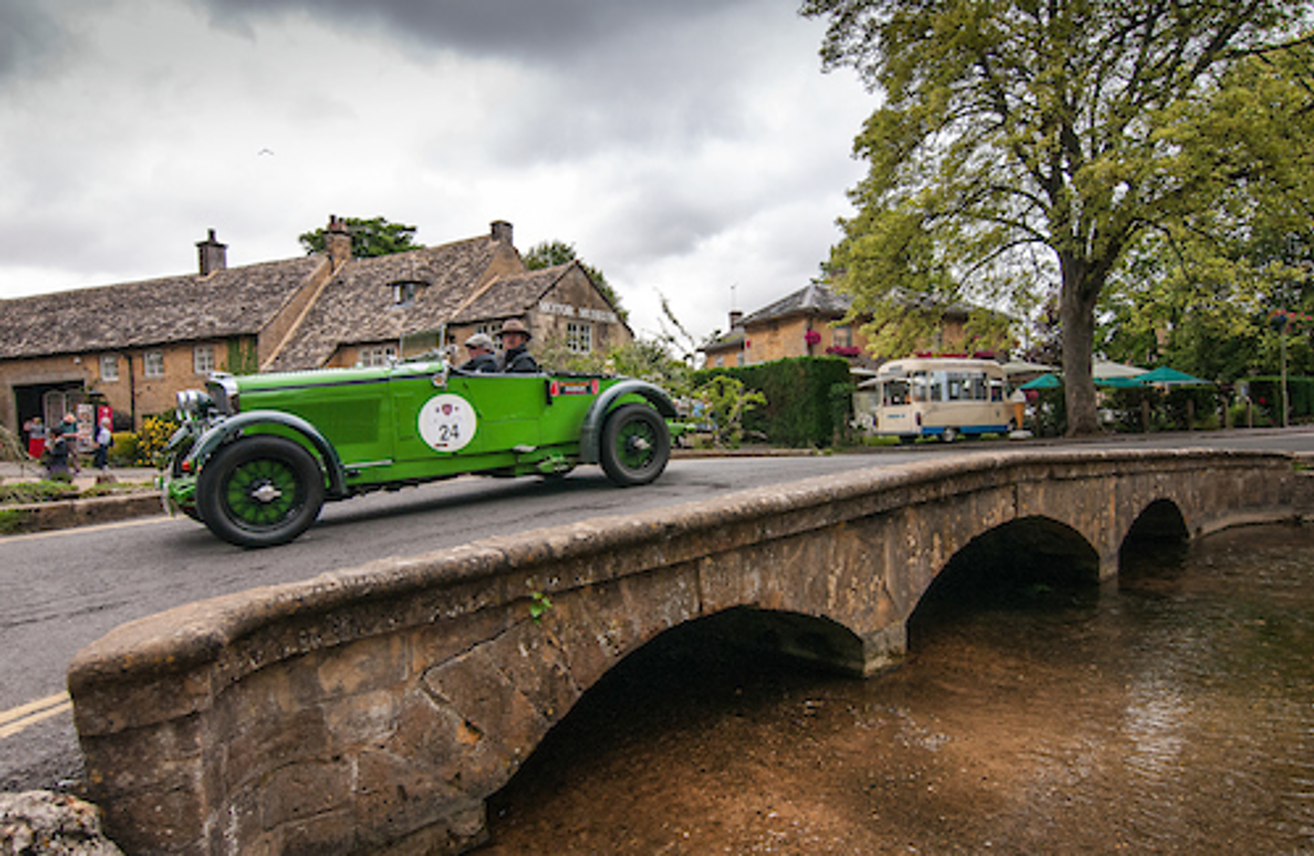 Passing by Charlbury the event was warmly received at Woodstock, it was a delight for most crews to drive through Ditchley Gate and take in the sight of the Victory Column before lunch, Grand Bridge providing a fitting backdrop as crews arrived at Churchill’s birthplace, a large crowd gathered to meet them, many coming from overseas to witness the vehicles parked in the Courtyard at Blenheim. Urs & Denise Mezger reported further fuel issues with their Morgan Three Wheeler at lunch, the Bentley Blower of Deganaar / Vrij was back in the hunt for a short while, only to find further mechanical problems after its earlier encounter with the ford.