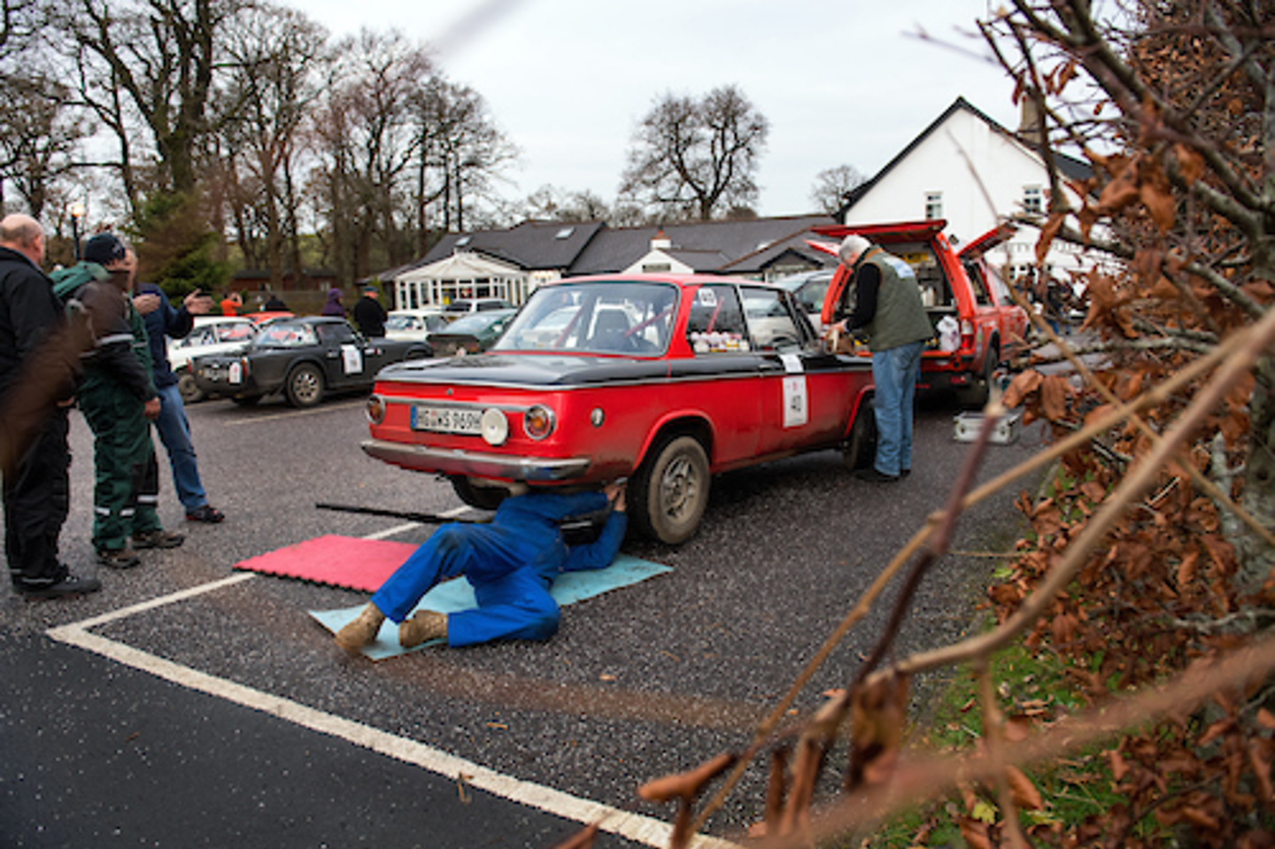 Ian Glass / Clifford Auld / Nick Ward were also experiencing issues in their 1953 Ford 103E nicknamed ‘The Flying Tortoise’, despite the vehicle being nursed round the event it was constantly boiling over and needed the head gasket replacing not just once, but twice within the first three legs, they only had one spare gasket left at Gretna so Ian undertook the repair and made a sterling job of it – ‘the Tortoise’ did make it to John O’Groats and was received with huge smiles wherever it went.