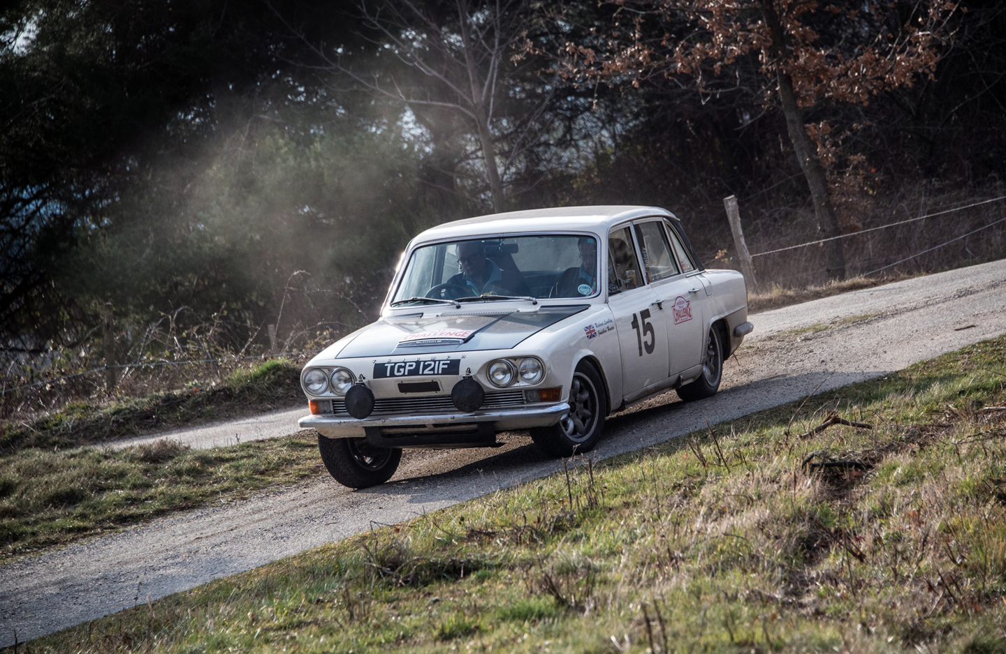 A fine lunch at Ogier’s Vineyard in Chateauneuf du Pape was enjoyed by all, barbecued Tuna, Chicken, Pork, Beef were accompanied by local charcuterie of the highest standard with petit-fours to finish. The final three regularities would bring the event into Mallemort overnight via some beautiful passes with open hairpins giving wide views over the vistas of Provence. The gorges and cliffs ranging in colour from a light buff to dark grey and seeming to shimmer in the warm late winter sunshine. There was nothing to upset the balance any further but Gresly and Whyte had narrowly reclaimed their lead back from Hancox and Lambley, they lie 12 seconds in front of them and have it all to lose tomorrow on the run to the Col du Turini. Best performance on all sections today went to Bloxidge/Canavan who have been shaking off some intermittent mechanical gremlins that has seen their Porsche 911 difficult to start at times. They recorded a one minute and six seconds total for the day to claim third from Dermot Carnegie/Paul Bosdet. In fifth are Monty Karlan/Peter Rushforth who are holding Ed Abbott/Pete Johnson at bay by a comfortable margin.