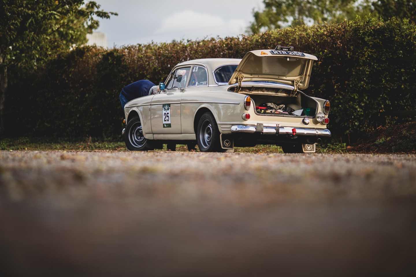 It was also super to see Mike Tanswell back with HERO navigated by his wife Helen in their lovely burbly 1971 Triumph Stag. What wasn’t so lovely was the fuel pump failure 200 yards before regularity one. Mike had a spare and fixed it only for he and Helen to get stuck behind a tractor on the next regularity. Then the clutch started slipping………Mike; “But we made it to the finish!”