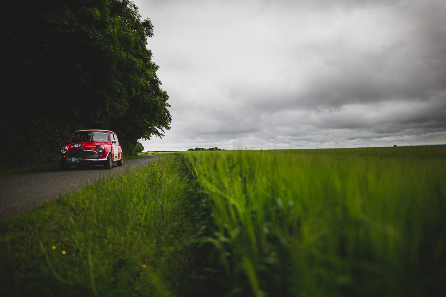 14 vintage and classic cars lined the grassy verges of the by now sun drenched lane, to form a corridor of historic vehicles with their owners and spectators to hail the HERO Challenge competitors passage. In return crews honked their horns and waved in response to this historic wall of cars. Amongst the cars was Richard Webster’s 1935 supercharged racing MG NE Magnette with an Ulster TT body. Richard; “ I received the PR letter saying the rally was coming through and decided to get some friends together with their cars to watch, we loved it!”