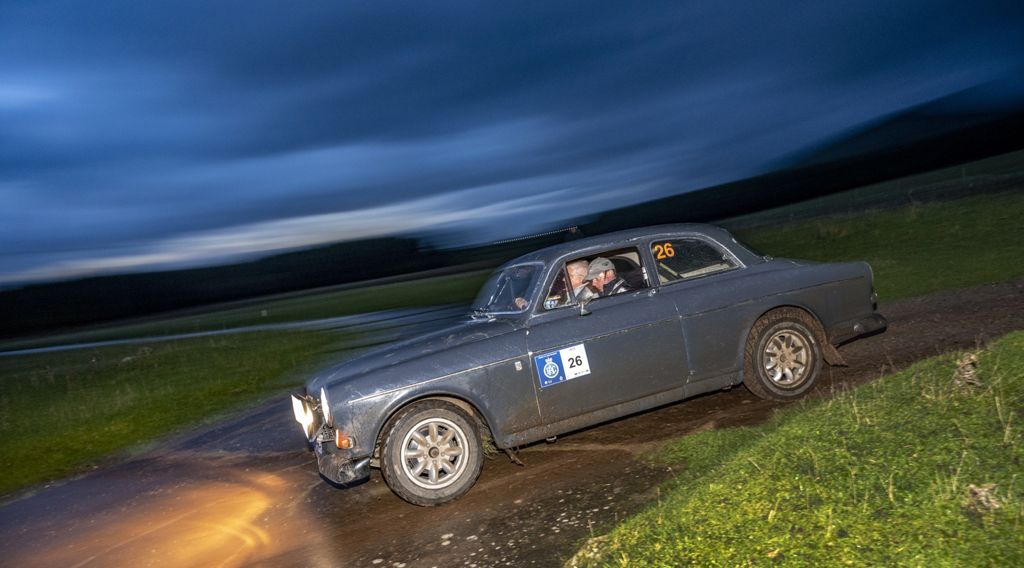 As a result of a tank trap edge catching and damaging the rear of their leading Porsche 356 B, Paul Crosby and Andy Pullan were caught by two cars including Paul Dyas and Martyn Talyor in their Volvo Amazon. Even six time RAC Rally of the Tests winner Mark Appleton navigating five time winner Paul Wignall, admitted making mistakes in the explosive atmosphere, yet despite the errors they are the overnight leaders.