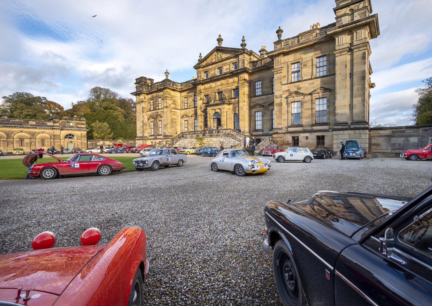 Also smiling at the halt, surveying the ancient elegant parkland from high on the balconies of Duncombe Park, were the unlucky duo of Dan Willan and Niall Frost who retired on the first night with a hole in their engine block. Undeterred, they had set about finding a replacement car overnight, just managing to fix the insurance on Niall’s girlriends Volvo minutes before the start.
