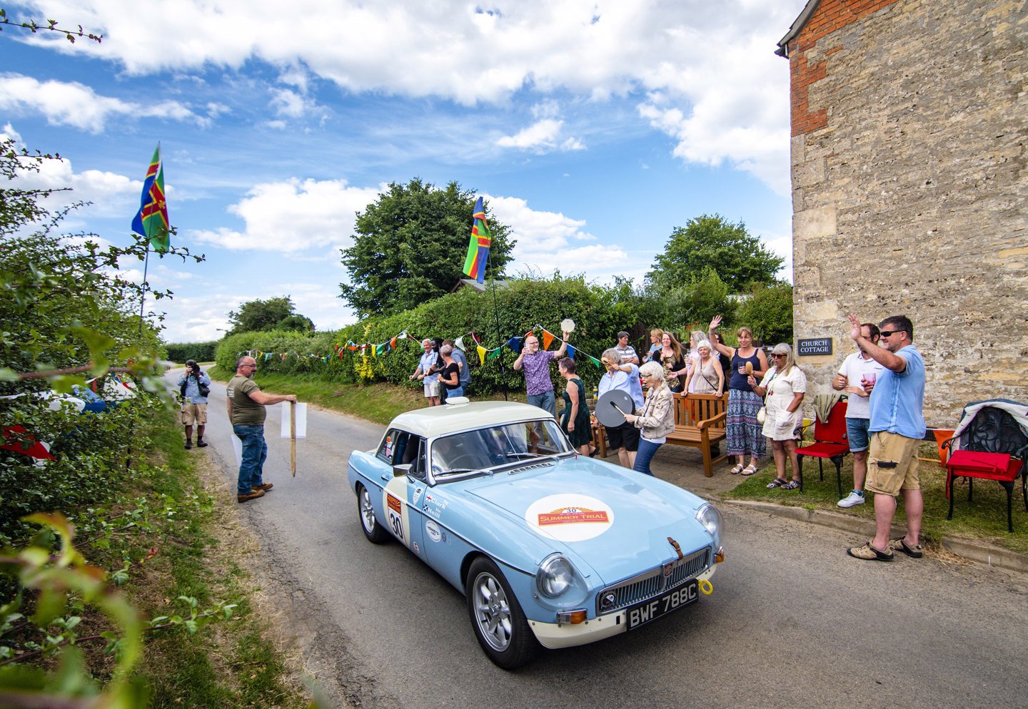 Another regularity awaited before the morning’s road sections would be complete, again through the beautiful lanes that criss-cross the farmland so prevalent in the Wolds. It finished in the pretty little village of Alford, with many folk choosing to watch the cars from front gardens and other kerbside vantage points, waving and clapping the competitors through, sometimes from the most unusual of spots.