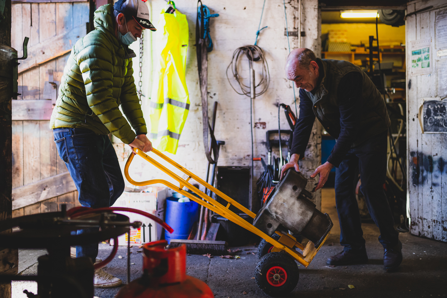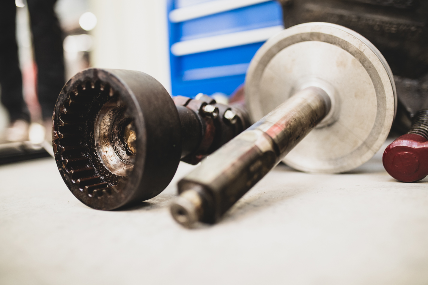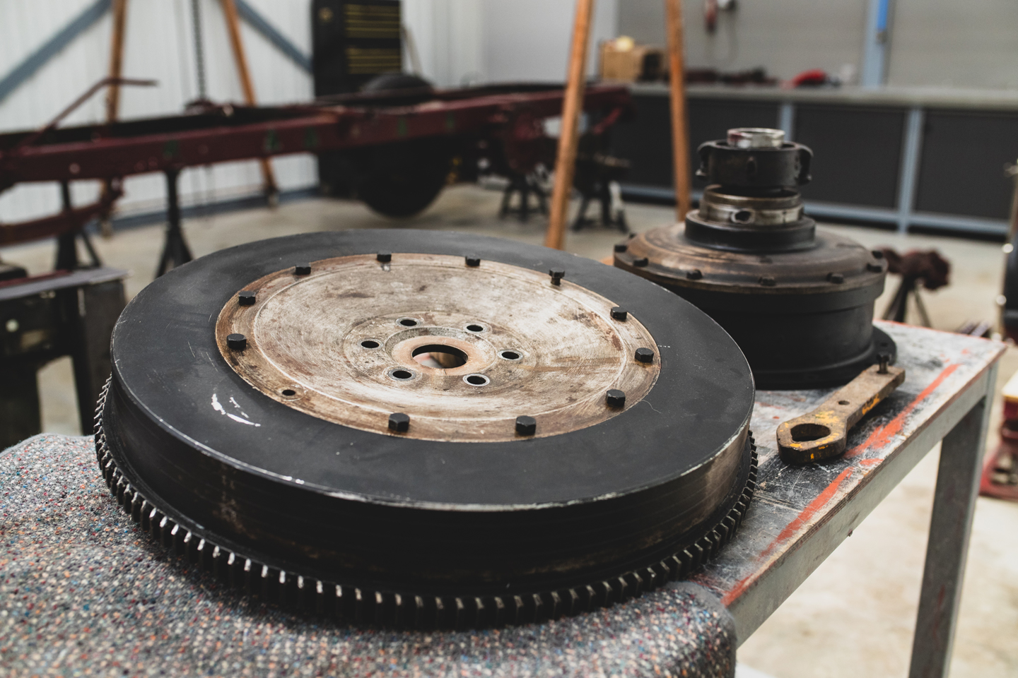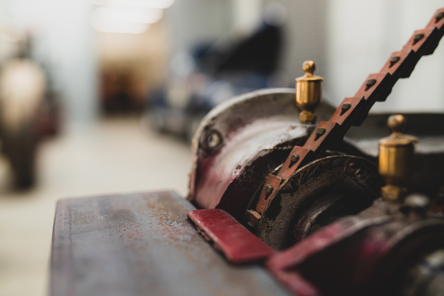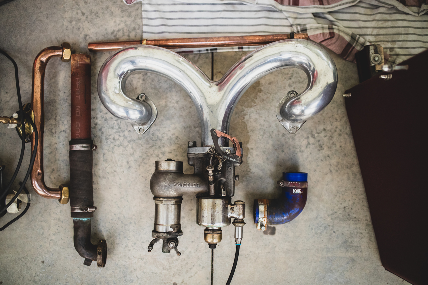 Seeing the beast laid out in component parts really hammers home what a huge machine it is. “Pick up the flywheel,” says Josh, pointing at the great lump of metal laid flat on the workbench. I know full well I won’t be able to, but I try anyway. As expected, it is beyond me, and I can only begin to imagine the sort of grunt required to spin up this rotational mass. As if reading my thoughts Josh next points out the engine, a great lump of a block that houses four giant pistons, yet more mass to push around before any of this effort is transferred into forward motion. “She cracks on when she’s going” assures Paul, “takes some stopping mind.” I can only imagine, although I’m told that Tomas found this out first-hand on the test drive.