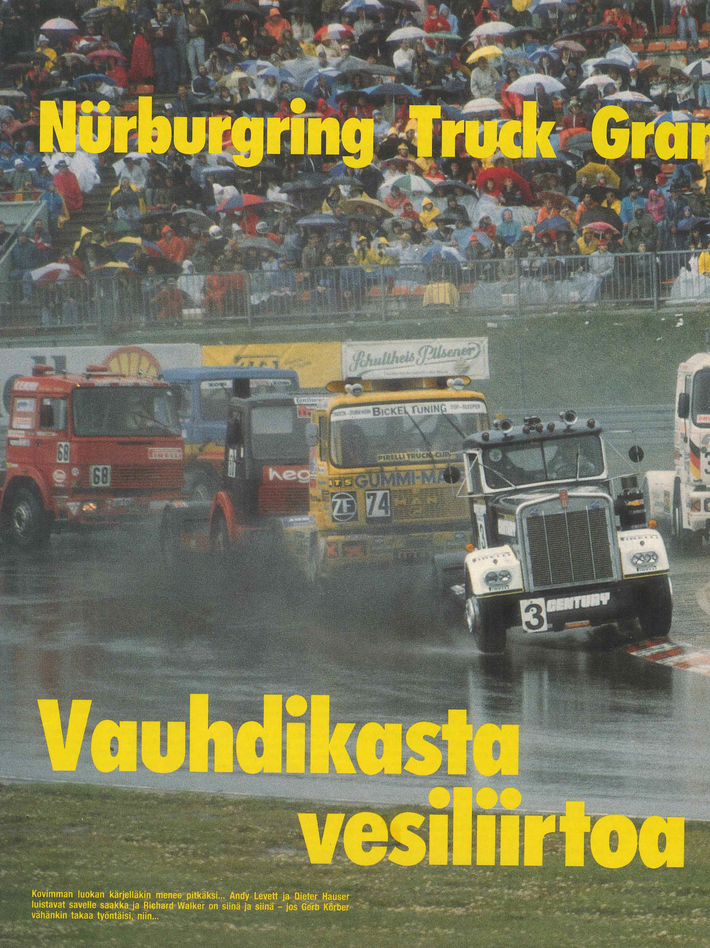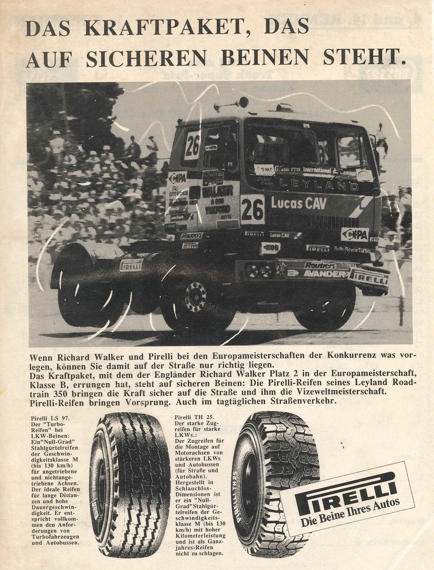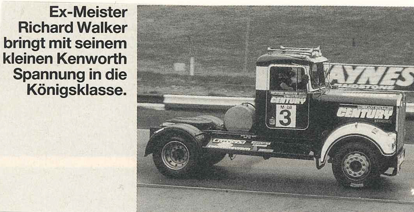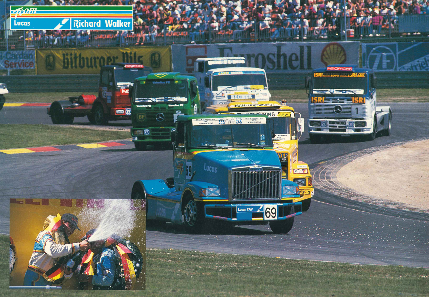 Richard Walker first raced Leyland then Kenworth then a Volvo White truck sponsored by Lucas, becoming triple European Class Champion. The three classes were based on engine size, Class A up to 12 litres, B to 14 litres then the monstrous Class C for over 14 litre engines!