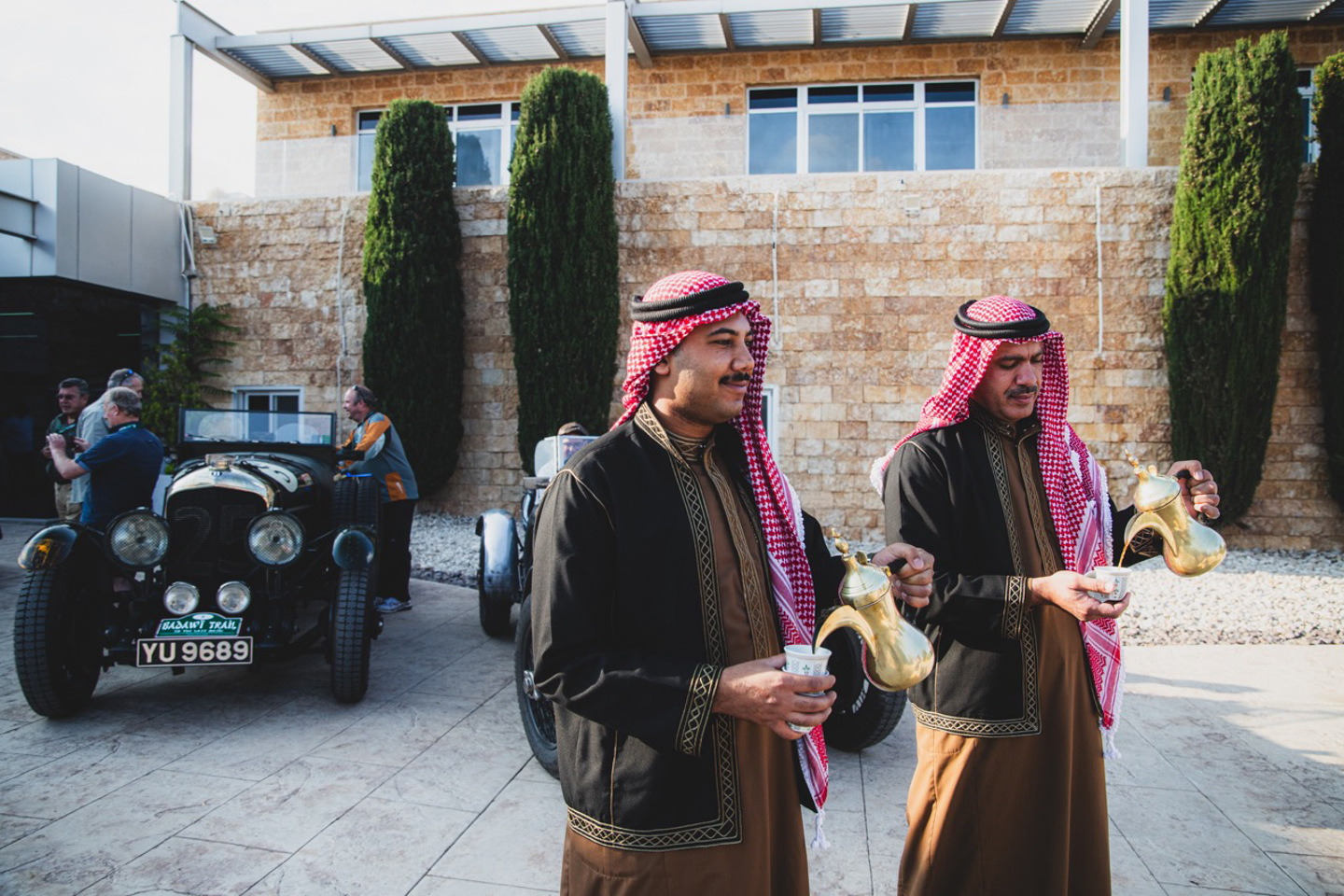 The final time control of the day was situated at the Royal Automobile Museum, next to the King Hussein Mosque with its opulent architecture. Here, the cars were welcomed by various dignitaries of the museum and the drivers were treated to some splendid hospitality that included a tour of the Museum’s backrooms, as well as cups of the most potent coffee I have ever tasted, the piquant liquid no doubt perking up those that were perhaps flagging in the day’s heat. This was a real treat and the museum, the first of its kind in this part of the world, provided automobile interest to all tastes and included many rare exhibits.