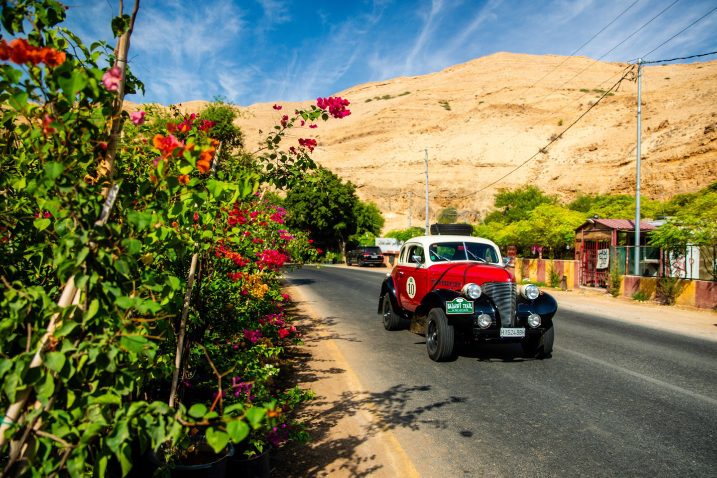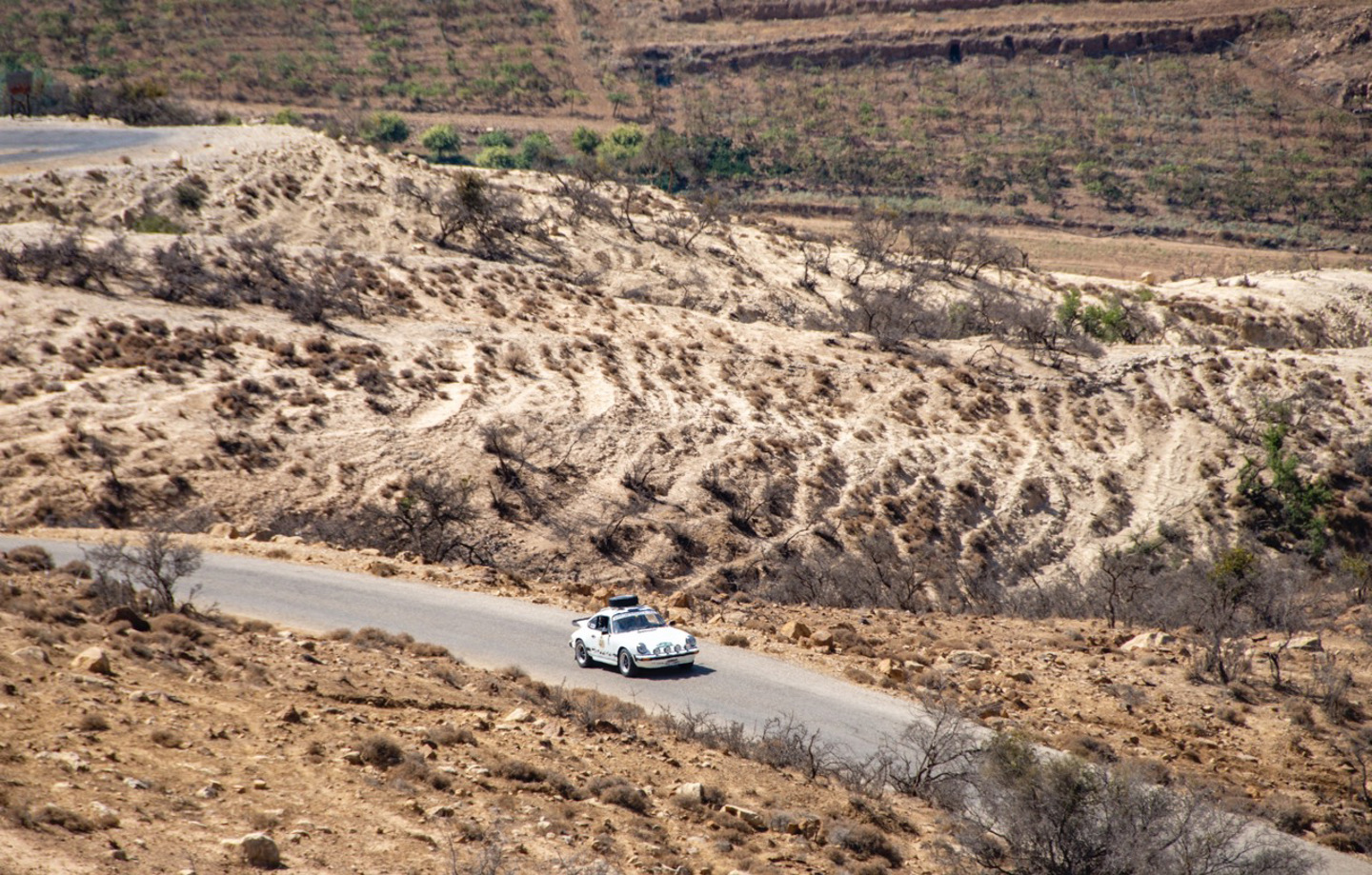 What we did have a lot more of today was built-up areas, as the 200 or so kilometres were punctuated at various points with villages and towns, as the roads pitched up and down the mountains in between groves of Olive and Fig trees. It was all very Acropolis Rally, with plenty of green and the neon blooms of the Paperflowers breaking up the khaki rocks, these were particularly abundant within the Oasis that lined the banks of the Wadi Shueib as the cars headed through the early morning light, to the days only regularity.